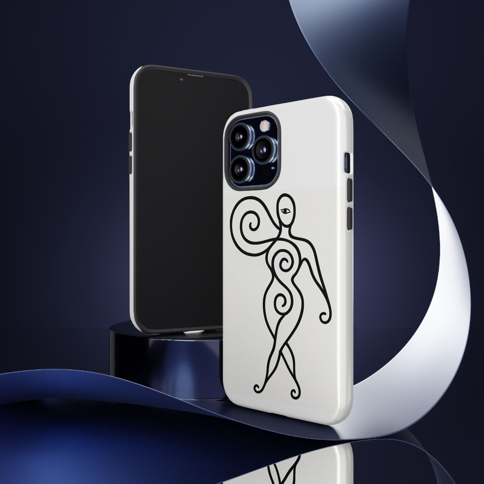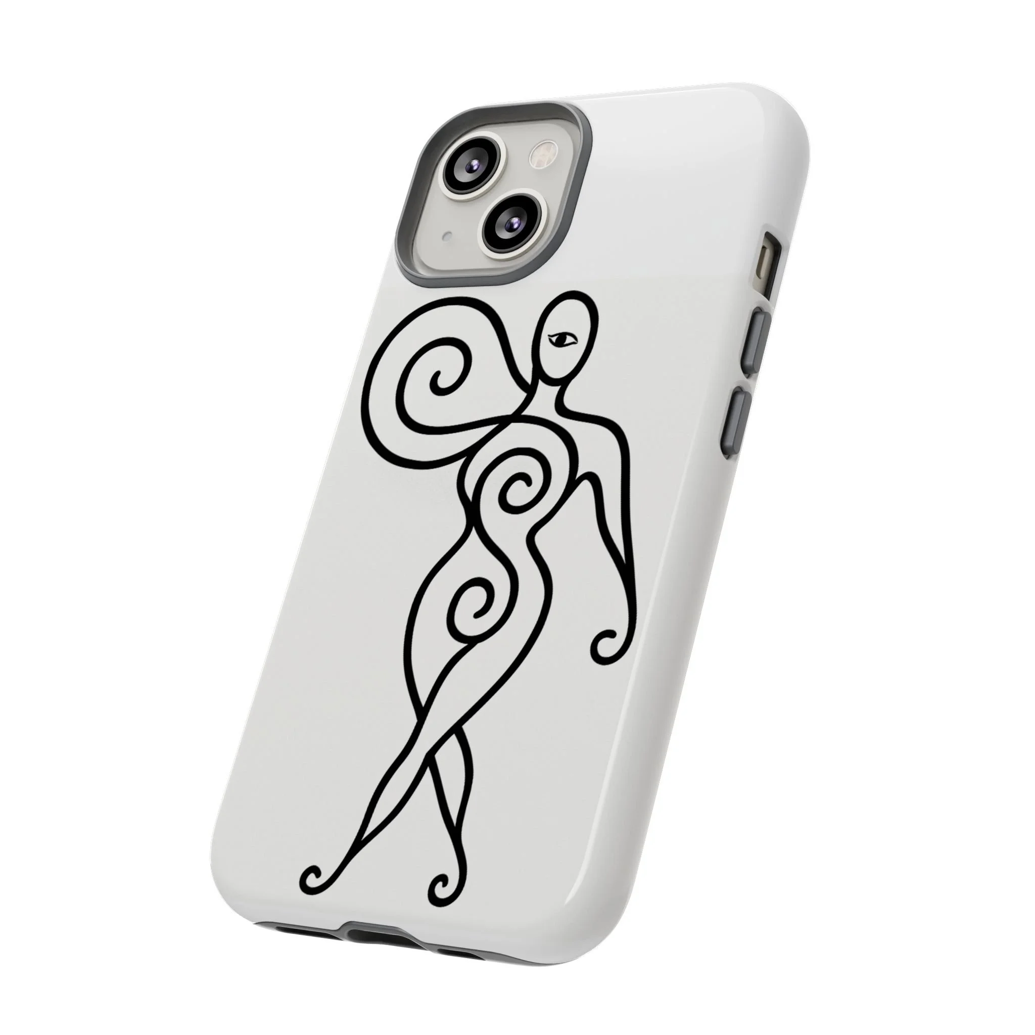 Sculpted in a single flowing line, this protective phone case carries a quiet confidence. The abstract dancing figure wraps the back in elegant curves, giving a minimal yet expressive look that moves with you. Dual-layer construction—rigid polycarbonate shell and TPU silicone liner—absorbs shocks while keeping edges slim. Choose glossy or matte to match your aesthetic; high-density 3D wrap printing keeps the design crisp and continuous. Built to stand up to the everyday with UV protection and certified materials, this case keeps your phone connected with clear ports and supports wireless charging. Notes on care are included so the artwork stays fresh: avoid strong alcohols, hand creams, and prolonged direct sunlight.